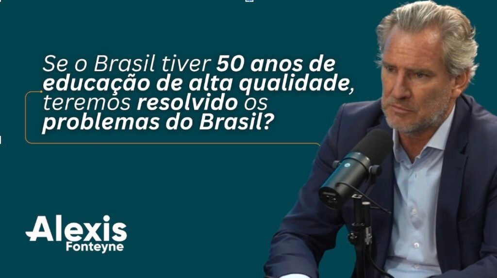Durante o podcast, o entrevistador afirmou: “Se o Brasil tiver 50 anos de educação de alta qualidade, teremos resolvido os problemas do Brasil!”.